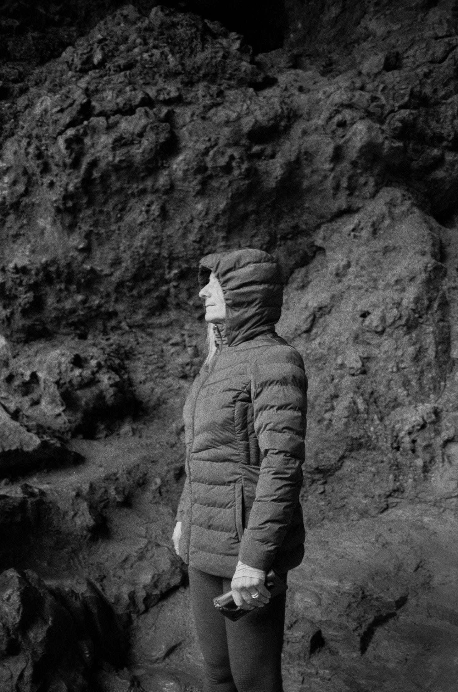 she stood at the top of the trail looking down at it, knowing the rest of the trail would take us right to the base and all the way behind it.